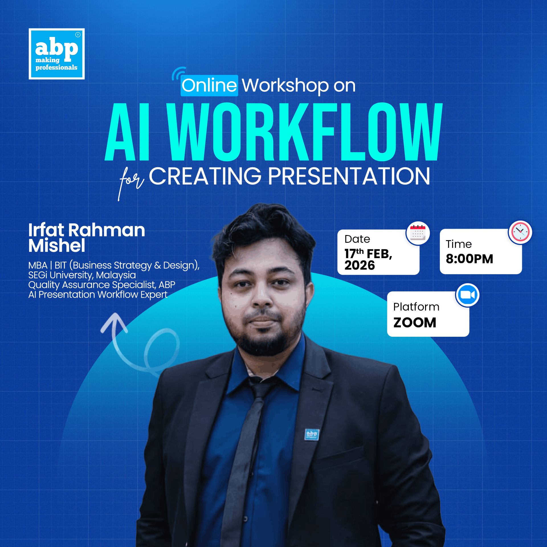 এই ওয়ার্কশপে আপনি শিখবেন end-to-end AI-based presentation creation process, যা কাজে লাগবে corporate meeting, freelancing pitch, বা classroom session – যেখানেই impactful deck দরকার।