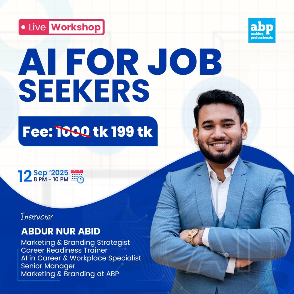 💻 AI for Job Seekers: Smarter CVs, Confident Interviews, Career Growth হলো একটি ২ ঘণ্টার ইন্টারঅ্যাকটিভ লাইভ ওয়ার্কশপ যেখানে আপনি একসাথে শিখবেন—